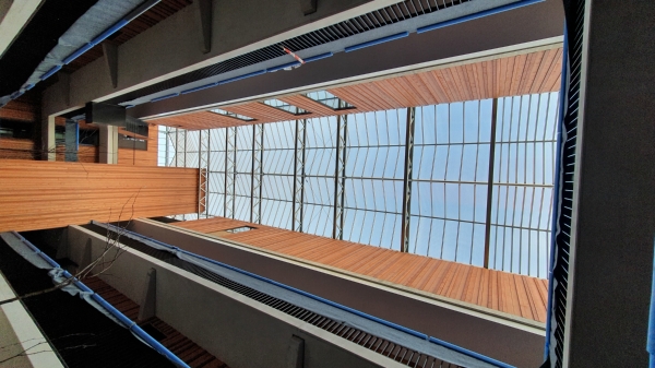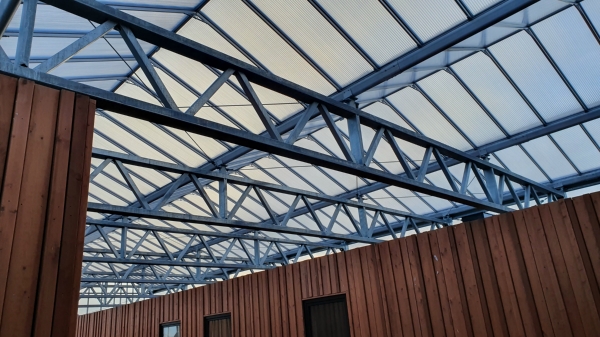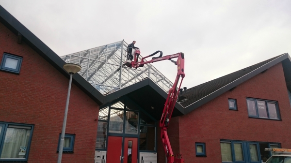 Een bestaand glasdek vervangen voor een nieuw dek van polycarbonaat platen.