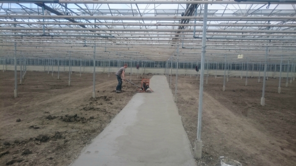 Nieuw betonpad in bestaande kas.